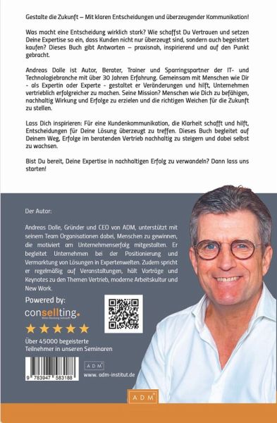 Experten-Vertrieb - Klar, empathisch und überzeugend Experten-Vertrieb - Klar, empathisch und überzeugend Wissen, was wirkt - Erfolgreich im beratenden Vertrieb für IT- und Technologieexperten Warum dieses Buch lesen? In der Welt des beratenden Vertriebs zählt mehr als nur Fachwissen. Kunden erwarten Klarheit, Vertrauen und eine echte Verbindung - besonders in komplexen Branchen wie der IT- und Technologiebranche. Mit Andreas Dolles neuem Buch erhalten Sie das Handwerkszeug, um nicht nur Lösungen zu präsentieren, sondern auch langfristige Beziehungen aufzubauen. Was macht dieses Buch so wertvoll? Der perfekte Leitfaden für Experten-Vertrieb Der beratende Vertrieb stellt besondere Anforderungen: Wie erklärt man hochkomplexe Themen so, dass sie verständlich, relevant und spannend sind? Wie baut man Vertrauen auf, ohne dabei zu technisch oder aufdringlich zu wirken? Dieses Buch liefert die Antworten - kompakt, praxisnah und mit vielen Beispielen aus der Welt von Beratern und Vertriebsprofis. * Kundenbedürfnisse erkennen: Erfahren Sie, wie Sie gezielte Fragen stellen und durch aktives Zuhören echte Verbindungen schaffen. * Komplexe Inhalte vereinfachen: Lernen Sie, abstrakte Lösungen verständlich zu machen - mit Metaphern, Geschichten und klaren Visualisierungen. * Das MOVE-Modell anwenden: Strukturieren Sie Präsentationen und Kundengespräche nach einem bewährten Modell: Motivation, Orientierung, Vision und Entscheidung. * Checklisten und Reflexion: Mit übersichtlichen Checklisten am Ende jedes Kapitels reflektieren Sie Ihre Fortschritte und bringen Ihr Wissen direkt in die Praxis. Für wen ist dieses Buch geeignet? Das Buch für Berater, Experten und Vertriebsprofis Dieses Buch richtet sich an alle, die im beratenden Vertrieb tätig sind und ihre Kommunikation auf ein neues Niveau heben möchten: * IT- und Technologieberater, die ihre Fachkompetenz klar und überzeugend präsentieren wollen. * Vertriebsprofis, die langfristige Beziehungen aufbauen und dabei Vertrauen schaffen möchten. * Führungskräfte, die ihre Teams im Umgang mit Kunden stärken und ihre Organisation besser positionieren wollen. Über den Autor: Andreas Dolle Andreas Dolle führt gemeinsam mit seiner Frau, der Service-Expertin Ulrike Dolle, das ADM Institut und die ADM Akademie. Zusammen unterstützen sie Unternehmen dabei, Kundenbeziehungen und Mitarbeiterentwicklung auf ein neues Niveau zu heben. Mit Kunden wie Deutsche Telekom, Fujitsu, HPE und führenden mittelständischen Unternehmen begleiten sie Organisationen bei der Positionierung und Vermarktung ihrer Lösungen in komplexen Expertenwelten. Häufige Fragen zum Buch Ist das Buch praxisorientiert? Ja, alle Inhalte basieren auf realen Erfahrungen und sind direkt umsetzbar - ideal für Fachkräfte im beratenden Vertrieb. Was ist das MOVE-Modell? Ein strukturiertes Vorgehen für Präsentationen und Gespräche, das Ihre Kunden motiviert, orientiert, inspiriert und zu klaren Entscheidungen führt. Warum ADM-Community? Hier finden Sie zusätzliche Tools, Vorlagen und den Austausch mit Gleichgesinnten, um Ihre Kenntnisse stetig zu erweitern.