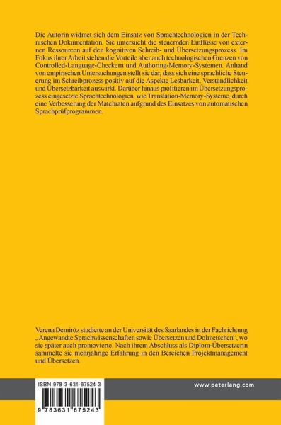 Die Autorin widmet sich dem Einsatz von Sprachtechnologien in der Technischen Dokumentation. Sie untersucht die steuernden Einflüsse von externen Ressourcen auf den kognitiven Schreib- und Übersetzungsprozess. Im Fokus ihrer Arbeit stehen die Vorteile, aber auch technologischen Grenzen von Controlled-Language-Checkern und Authoring-Memory-Systemen. Anhand von empirischen Untersuchungen stellt sie dar, dass sich eine sprachliche Steuerung im Schreibprozess positiv auf die Aspekte Lesbarkeit, Verständlichkeit und Übersetzbarkeit auswirkt. Darüber hinaus profitieren im Übersetzungsprozess eingesetzte Sprachtechnologien, wie Translation-Memory-Systeme, durch eine Verbesserung der Matchraten aufgrund des Einsatzes von automatischen Sprachprüfprogrammen.