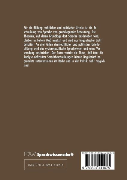 Die Beschreibung des Gebrauchs und Verstehens von Sprache gehOrt zum Alltag sowohl des Rechts als auch der Politik. Politische Entscheidungen werden ebenso wie rechtliche Entscheidungen sprachlich vorbereitet, getroffen, begriindet und pdisentiert. Fiir die Bewaltigung jeder dieser sprachlichen Aufgaben spielt die Beschreibung des Gebrauchs und Ver stehens von Sprache eine bedeutende Rolle: Texte und A.uBerungen wer den interpretiert, Interpretationen von Texten und A.uBerungen werden begriindet, die sprachliche Prasentation von Entscheidungen wird im Hinblick auf weitere Entscheidungen geplant. Jede dieser Handlungen setzt die Beschreibung ihrer Geschichte voraus, ihrer Vor-und der auf sie folgenden Geschichte, deren Elemente (Akteure, Handlungen, Ereignisse) und die Beschreibung der zeitlichen und logischen Verkniipfungen der Elemente der Handlungsgeschichte. Eine strafrechtliche Entscheidungsnorm nimmt Bezug auf sach- und verfahrensrechtliche Normtexte und ihre Kommentierungen, auf Texte, in denen ein zu entscheidender Sachverhalt dem Gericht geschildert wird, und schlieBlich im Fall von A.uBerungsdelikten auch auf den sprachlichen Vollzug einer Straftat. Gerichtliche Entscheidungen prasentieren rur sie selbst relevante Sprachbeschreibungen und deren Begriindungen und reflektieren insofern einen vergangenen ArgumentationsprozeB. Zugleich k6nnen sie sich nicht als Endpunkt eines Entscheidungsprozesses begreifen, sondern stets nur als Zwischenstation: Recht und Unrecht werden (zu mindest in unserer Rechtskultur) immer nur bis aUf weiteres entschieden, Entscheidungen sind insofern selbst Argumente, auf die andere folgen werden.