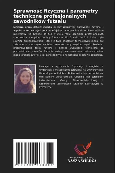 Niniejsza praca dotyczy zwi¿zku mi¿dzy zmiennymi sprawno¿ci fizycznej i aspektami technicznymi podczas oficjalnych meczów futsalu w pierwszej lidze mistrzostw Rio Grande do Sul w 2015 roku, oceniaj¿c profesjonalnych sportowców z m¿skiej dru¿yny futsalu w Rio Grande do Sul. Celem by¿o równie¿ przeanalizowanie, które z tych aspektów technicznych mog¿ by¿ zwi¿zane z ko¿cowym wynikiem meczów. Aby uzyskä wyniki badania, przeprowadzono testy fizyczne i analiz¿ wydajno¿ci technicznej za po¿rednictwem skautów. Badania zostäy przeprowadzone podczas studiów magisterskich autorki, a jej dane z¿o¿y¿y si¿ na ko¿cow¿ rozpraw¿ doktorsk¿.