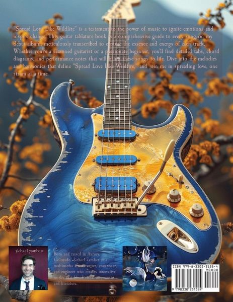 "Spread Love Like Wildfire" is more than just an album-it's a musical odyssey, a journey of passion and purpose. Within the pages of this meticulously crafted guitar tablature book lies the heart and soul of every note, every lyric, and every chord progression that makes up my debut masterpiece. Each song has been lovingly transcribed, capturing not just the technical details but also the raw emotion and infectious energy that courses through every melody and harmony. Whether you're a seasoned guitarist, well-versed in the intricacies of fretwork, or a novice just beginning to explore the vast landscape of musical expression, this book has something for you. Detailed tabs, chord diagrams, and performance notes provide invaluable guidance, serving as a roadmap through the sonic landscape of "Spread Love Like Wildfire." But beyond the technical aspects, this book is an invitation-a call to immerse yourself in the music, to feel its power, and to join me on a journey of spreading love, one strum at a time. As you dive into these songs, you'll discover not just music, but stories-tales of love and loss, of triumph and adversity, of hope and resilience. Each track is a testament to the human experience, a reminder that, no matter what challenges we face, music has the power to heal, to uplift, and to inspire. So let these melodies wash over you, let them stir something deep within your soul, and let us together spread love like wildfire, igniting hearts and minds with the transformative power of music.