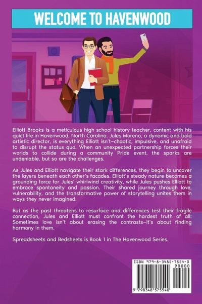 Elliott Brooks has always valued structure and predictability in his life. Teaching history at Havenwood High offers him the stability he craves, especially as he balances co-parenting his twelve-year-old son, Caleb. After years of playing it safe, Elliott finds himself yearning for something more but fears stepping too far outside his comfort zone. Enter Jules Moreno-a whirlwind of energy and creativity. Fresh from a bustling life in the city, Jules returns to Havenwood in search of healing and purpose. As the new artistic director for the community playhouse, Jules brings big ideas, bold plans, and a bit of chaos to the otherwise quiet town. When Elliott and Jules are brought together to plan the town's Pride Month event, their clashing personalities are immediately apparent. Elliott prefers carefully crafted lesson plans, while Jules thrives in the spontaneity of the creative process. Their heated arguments soon give way to playful banter and a growing mutual respect, leading to a connection that surprises them both. As their relationship deepens, Elliott learns to embrace the beauty of imperfection, while Jules discovers the strength in having someone steady by their side. Together, they navigate the challenges of building a life that bridges their two distinct worlds, finding that love, like any great story, requires both order and chaos to thrive. Set against the vibrant backdrop of Havenwood, Spreadsheets and Bedsheets is a heartwarming MM romance about embracing differences, rediscovering yourself, and learning that the best love stories are the ones that surprise us.