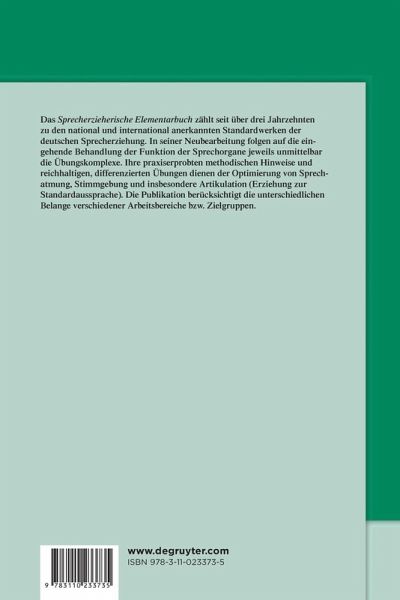 Das Sprecherzieherische Elementarbuch zählt seit über drei Jahrzehnten zu den national und international anerkannten Standardwerken der deutschen Sprecherziehung. Grundlage ist eine dialogorientierte Sprecherziehung. Jegliche mechanistische Sprechtechnik wird folglich entschieden abgelehnt.