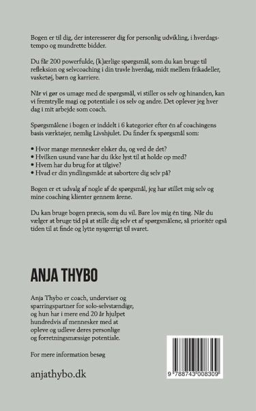 Du får 200 powerfulde, (k)ærlige spørgsmål, som du kan bruge til refleksion og selvcoaching i din travle hverdag, midt mellem frikadeller, vasketøj, børn og karriere.