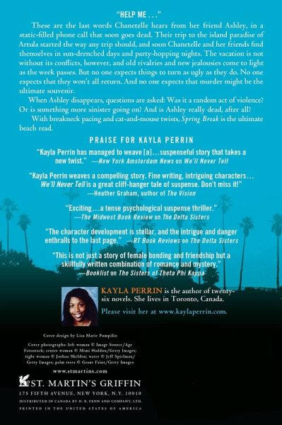 With a breakneck pace and cat-and-mouse twists, Spring Break is the ultimate beach read. "Help me . . ." These are the last words Chanetelle hears from her friend Ashley, in a static-filled phone call that soon goes dead. Their trip to the island paradise of Artula started the way any trip should, and soon Chanetelle and her friends find themselves in sun-drenched days and party-hopping nights. The vacation is not without its conflicts, however, and old rivalries and new jealousies come to light as the week passes. But no one expects things to turn as ugly as they do. No one expects that they won't all return. And no one expects that murder might be the ultimate souvenir. When Ashley disappears, the question is asked: Was it a random act of violence? Or is something more sinister going on? And is Ashley really dead, after all? "Drawing on real-life tragedies, Perrin creates an unforgettable and chilling tale of the seamy side of an island paradise." - Booklist