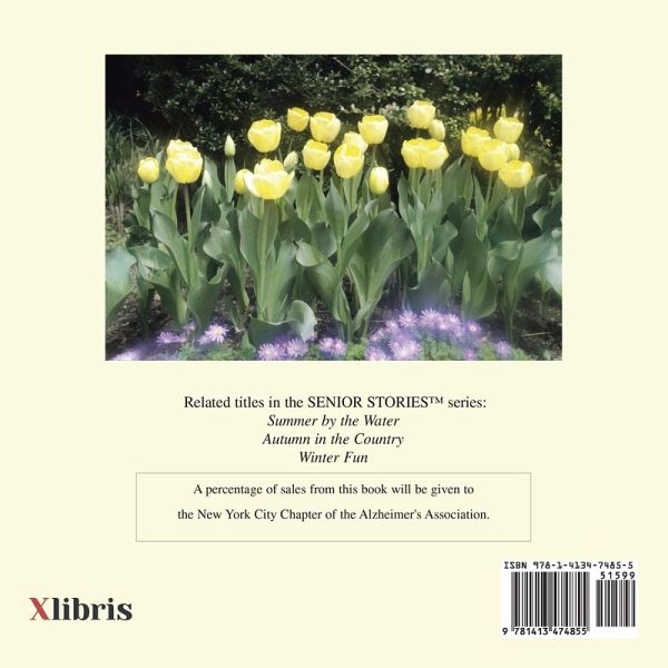 Spring in the Park is one book in the SENIOR STORIES series of color photography books with simple text designed to stimulate conversation and interaction between seniors with Alzheimer's and their caregivers. The readers will take a visual trip through a park to see cherry trees, tulips, daffodils and other blossoms as well as a toy sailboat on a pond, a picnic scene, a man in a rowboat...and more. The text invites the senior readers to tell what they like about the park in spring-which flowers are their favorites, what they'd eat at a picnic, whether they'd like a boat ride...Seniors might tell their own springtime memories, or tell a new story about a photo, or just enjoy looking at the images! Jed Levine, Executive Vice President of the New York City Chapter of the Alzheimer¿s Association, writes,"Spring in the Park is a book that can be shared by two people or enjoyed alone. For a person with dementia, these evocative pictures may momentarily jog a memory like the scent of lilacs or the taste of a ripe peach, reawakening a lost experience. These images of life's pleasures have the potential to stimulate conversation by rekindling warm feelings, which are captured in the pages of this special book." The author hopes both seniors and caregivers enjoy sharing the springtime scenes.