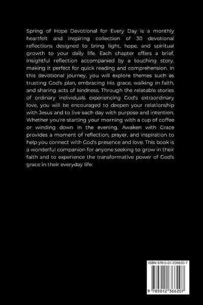 Spring of Hope by Pastor Emmanuel Joseph Step into the renewal and unwavering promise of faith with "Spring of Hope," a transformative devotional book authored by Pastor Emmanuel Joseph. Designed to uplift, inspire, and fortify your spiritual journey, this compelling collection of daily reflections invites readers to bask in the gentle warmth and vibrant awakening of God's love. In "Spring of Hope," Pastor Emmanuel Joseph masterfully intertwines profound scriptural insights with real-life experiences, illustrating the powerful presence of hope in every season of life. Each devotion is a gentle reminder of God's unfailing faithfulness, offering readers an oasis of peace, clarity, and rejuvenation amidst the hustle and bustle of daily living. Whether you are seeking to deepen your relationship with God, find solace in challenging times, or simply start your day with an invigorating dose of spiritual encouragement, "Spring of Hope" serves as a guiding light. Let these pages bloom with the wisdom and grace that spring from the heart of a devoted pastor, ready to nurture and nourish your soul with the ever-refreshing springs of divine hope. Embark on this enriching journey, and allow "Spring of Hope" to be your companion in cultivating a life rooted in unwavering faith, joy, and hope.