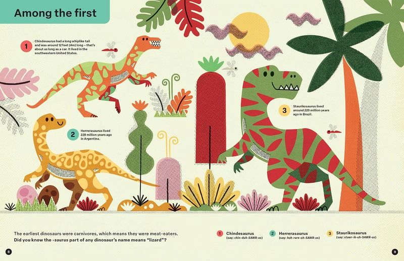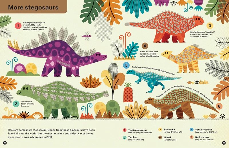 With striking artwork and bold design, this 48-page hardcover features dinosaurs of all shapes and sizes - from the smallest meat-eaters and plant-eaters to creatures with huge jaws, massive claws, super scales, powerful wings, and armoured plates! Look out for the T. rex, hadrosaur, troodon, stegosaur, triceratops, pteranodon, and more.