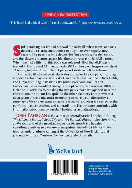 Spring training is a time of renewal for baseball, when teams and fans descend on Florida and Arizona to begin the ever hopeful new season. The pace is a little slower, the fans are closer to the action, and the players are more accessible: the sport returns to its idyllic roots. When the first edition of this book was released, 18 of the MLB teams trained in Florida and 12 in Arizona. As 2013 arrives each league consists of 15 teams; together they utilize 14 parks in Florida and 10 in Arizona. This heavily illustrated work dedicates a chapter to each park, including modern Cactus League marvels like Camelback Ranch and Salt River Fields, and Grapefruit League bastions like Joker Marchant Stadium and McKechnie Field. Florida's Fenway Park replica, which opened in 2012, is included. In addition to profiling the five parks that have opened since the first edition, the author has updated the other chapters. Each provides a description of the park, and a recounting of its history, followed by a summary of the home team or teams' spring history. Next is a review of the park's seating, concessions and fan traditions. Each chapter concludes with information about nearby baseball landmarks and attractions.