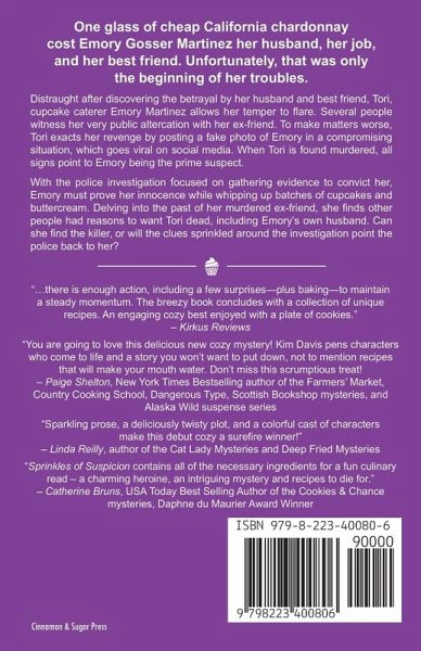 One glass of cheap California chardonnay cost Emory Gosser Martinez her husband, her job, and her best friend. Unfortunately, that was only the beginning of her troubles. Distraught after discovering the betrayal by her husband and best friend, Tori, cupcake caterer Emory Martinez allows her temper to flare. Several people witness her very public altercation with her ex-friend. To make matters worse, Tori exacts her revenge by posting a fake photo of Emory in a compromising situation, which goes viral on social media. When Tori is found murdered, all signs point to Emory being the prime suspect. With the police investigation focused on gathering evidence to convict her, Emory must prove her innocence while whipping up batches of cupcakes and buttercream. Delving into the past of her murdered ex-friend, she finds other people had reasons to want Tori dead, including Emory's own husband. Can she find the killer, or will the clues sprinkled around the investigation point the police back to her? Includes recipes!