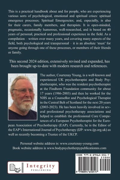 This is a practical handbook about and for people, who are experiencing various sorts of psychological, emotional and spiritual crises: spiritual emergence processes; Spiritual Emergencies; and, especially, is also for their carers, family members, and therapists. It is open-minded, pragmatic, occasionally humorous, well-researched, and is based on 40 years of personal, practical and professional experience in the field. As a compilation - written over many years, and covering many aspects of the field, both psychological and transpersonal - it is an absolute 'must' for anyone going through one of these processes, or members of their friends or family. This second 2024 edition, extensively revised and expanded, has been brought up-to-date with modern research and references.