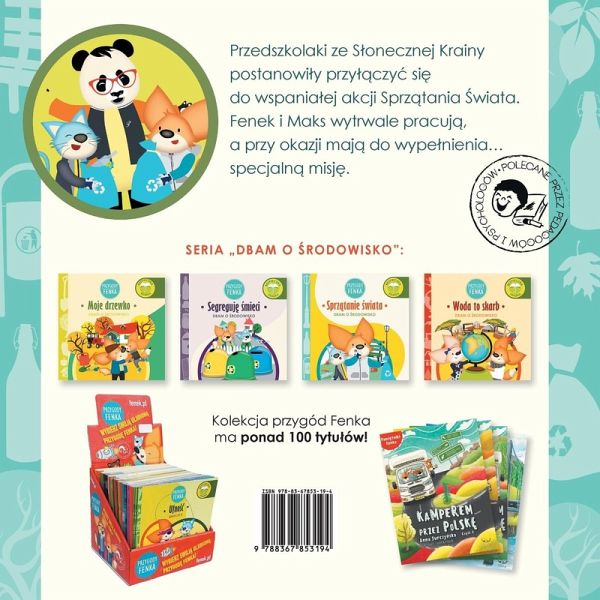 Przedszkolaki ze S¿onecznej Krainy postanowi¿y przy¿¿czy¿ si¿ do wspaniäej akcji Sprz¿tania ¿wiata. Fenek i Maks wytrwale pracuj¿, a przy okazji maj¿ do wype¿nienia... specjaln¿ misj¿. Dzi¿ki tej ksi¿¿eczce Twoje dziecko:Pozna akcj¿ "Sprz¿tania ¿wiata". Dowie si¿, jak nale¿y si¿ zachowä, je¿li w pobli¿u nie ma koszy na ¿mieci. Dowie si¿, w jaki sposób möe pomóc w dbaniu o ¿rodowisko. Zrozumie, jak powäne skutki niesie ze sob¿ zämiecanie otoczenia. Poza dostosowan¿ do wieku dzieci tre¿ci¿ i pi¿knymi, kolorowymi ilustracjami, ksi¿¿ka zawiera równie¿ wiele dodatkowych materiäów:Pomys¿y na ciekawe sp¿dzenie czasu z dzieckiem po przeczytaniu ksi¿¿eczki. Wypowiedzi eksperta Nasze bajki to idealny sposób na przyjemne, ale i efektywne sp¿dzenie czasu z maluchem. To nie tylko bajka "do poduszki", ale cö o wiele wi¿cej. Nie tylko ksi¿¿eczka do jednorazowego przeczytania, a pomoc edukacyjna i wychowawcza.