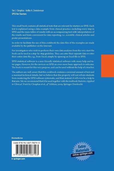 This small book addresses different kinds of datafiles, as commonly encountered in clinical research, and their data-analysis on SPSS Software. Some 15 years ago serious statistical analyses were conducted by specialist statisticians using ma- frame computers. Nowadays, there is ready access to statistical computing using personal computers or laptops, and this practice has changed boundaries between basic statistical methods that can be conveniently carried out on a pocket calculator and more advanced statistical methods that can only be executed on a computer. Clinical researchers currently perform basic statistics without professional help from a statistician, including t-tests and chi-square tests. With help of user-friendly software the step from such basic tests to more complex tests has become smaller, and more easy to take. It is our experience as masters' and doctorate class teachers of the European College of Pharmaceutical Medicine (EC Socrates Project Lyon France) that s- dents are eager to master adequate command of statistical software for that purpose. However, doing so, albeit easy, still takes 20-50 steps from logging in to the final result, and all of these steps have to be learned in order for the procedures to be successful.