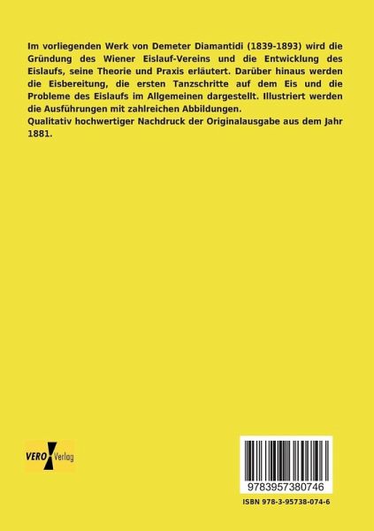 Im vorliegenden Werk von Demeter Diamantidi (1839-1893) wird die Gründung des Wiener Eislauf-Vereins und die Entwicklung des Eislaufs, seine Theorie und Praxis erläutert. Darüber hinaus werden die Eisbereitung, die ersten Tanzschritte auf dem Eis und die Probleme des Eislaufs im Allgemeinen dargestellt. Illustriert werden die Ausführungen mit zahlreichen Abbildungen.