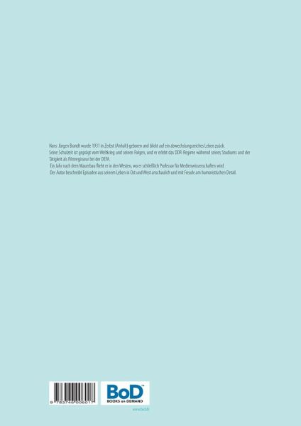 Hans-Jürgen Brandt wurde 1931 in Zerbst (Anhalt) geboren und blickt auf ein abwechslungsreiches Leben zurück. Seine Schulzeit ist geprägt vom Weltkrieg und seinen Folgen, und er erlebt das DDR-Regime während seines Studiums und der Tätigkeit als Filmregisseur bei der DEFA. Ein Jahr nach dem Mauerbau flieht er in den Westen, wo er schließlich Professor für Medienwissenschaften wird. Der Autor beschreibt Episoden aus seinem Leben in Ost und West anschaulich und mit Freude am humoristischen Detail.