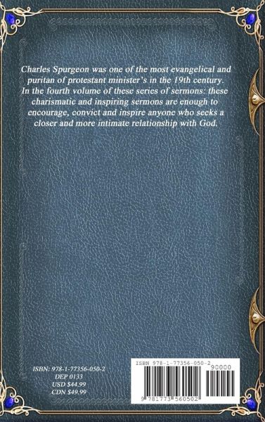 Charles Spurgeon was one of the most evangelical and puritan of protestant minister's in the 19th century. In the fourth volume of these series of sermons: these charismatic and inspiring sermons are enough to encourage, convict and inspire anyone who seeks a closer and more intimate relationship with God.