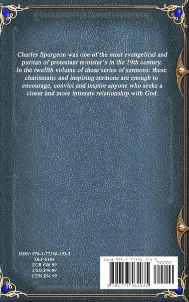 Charles Spurgeon was one of the most evangelical and puritan of protestant minister's in the 19th century. In the twelfth volume of these series of sermons: these charismatic and inspiring sermons are enough to encourage, convict and inspire anyone who seeks a closer and more intimate relationship with God.