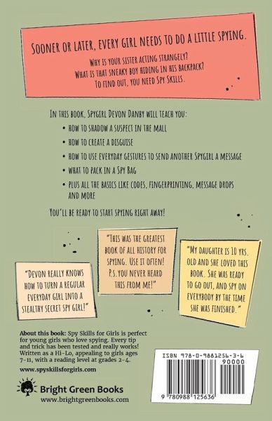 Sooner or later, every girl needs to do a little spying. Why is your sister acting strangely? What is that sneaky boy hiding in his backpack? To find out, you need skills. Spy skills. And Devon Danby, Spygirl extraordinaire, is just the girl to teach you. Spy Skills for Girls is packed with the kind of spy skills a modern-day girl needs, such as:how to shadow a suspect in the mall how to create a disguise how to use everyday gestures to send another Spygirl a message what to pack in a Spy Bag plus all the basics like codes, fingerprinting, message drops and more This easy-to-read book is perfect for young girls who love spying and want to know the very best techniques. Some books include long lists of every possible spy skill - Spy Skills for Girls only includes the ones that work better than all the others. Every tip and trick in this book has been tested and really works! You and your best Spygirl friends will be ready to start spying right away! Second Edition! Now with illustrations and more practice with codes!