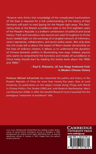 Since the end of the Cold War, the operations of secret police informers have come under the media spotlight and it is now common knowledge that vast internal networks of spies in the Soviet Union and East Germany were directed by the Communist Party. By contrast, very little historical information has been available on the covert operations of the security services in Mao Zedong's China. However, as Michael Schoenhals reveals in this intriguing and sometimes sinister account, public security was a top priority for the founders of the People's Republic and agents were recruited from all levels of society to ferret out 'counter-revolutionaries'. On the basis of hitherto classified archival records, the book tells the story of a vast surveillance and control apparatus through a detailed examination of the cultivation and recruitment of agents, their training and their operational activities across a twenty-year period from 1949 to 1967.