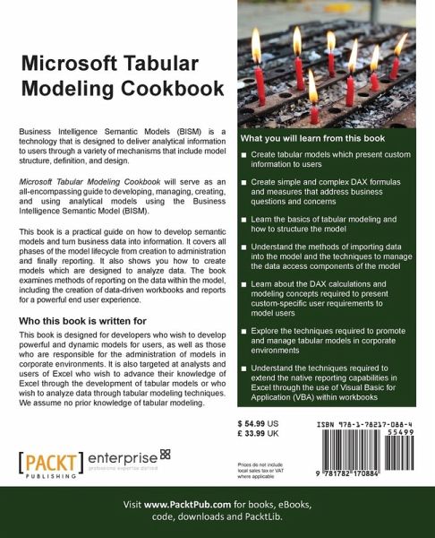 Over 50 tips and tricks for analytical modeling using Business Intelligence Semantic Models with SQL Server 2012 and PowerPivot. Develop tabular models for personal use, learn about the modeling techniques which are required to overcome commonly encountered problems and master advanced modeling scenarios, understand the techniques required to promote personal models to corporate enterprise environments and manage the models in a corporate environment and learn tips and tricks for querying tabular models and learn how to access the data within them for dynamic reporting including the development of interactive workbooks.