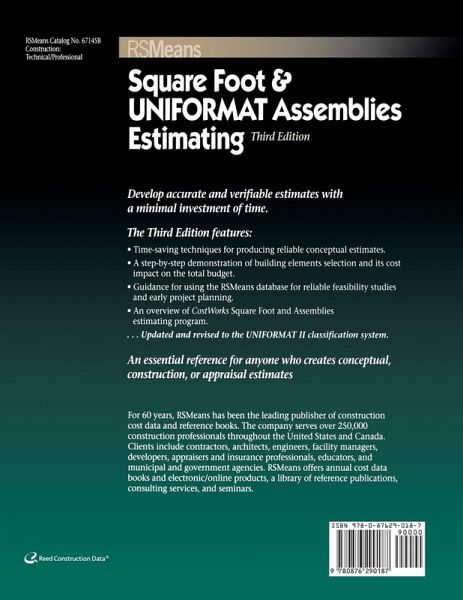 Now completely updated and revised to the UNIFORMAT II classification of estimating, this book is an essential reference for anyone who creates conceptual, construction, or appraisal estimates. You will learn: Time-saving techniques for producing reliable conceptual estimatesStep-by-step demonstration of building elements selection and its cost impact on the total budgetHow to use the RSMeans database for reliable feasibility studies and early project planning Also included is an overview of the CostWorks CD-ROM Square Foot and Assemblies Estimating software.