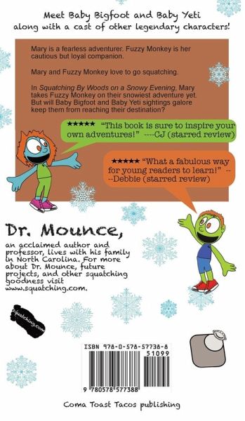 Mary is a fearless adventurer. Fuzzy Monkey is her cautious but loyal companion. Mary and Fuzzy Monkey love to go squatching. In Squatching By Woods on a Snowy Evening, Mary takes Fuzzy Monkey on their snowiest adventure yet. But will Baby Bigfoot and Baby Yeti sightings galore keep them from reaching their destination? Squatching By Woods on a Snowy Evening is the perfect introduction of literary classics to young readers. Children ages 9 - 12 and grades 3 - 8 will also find this illustrated parody of the Robert Frost poem a humorous and entertaining glimpse into the world of cryptozoology.