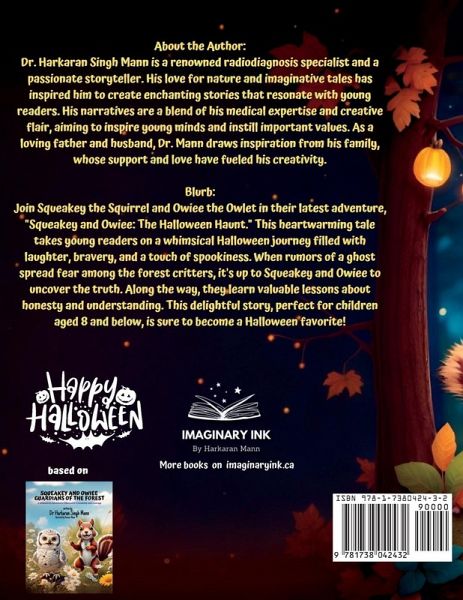 Join Squeakey the Squirrel and Owiee the Owlet in their latest adventure, "Squeakey and Owiee: The Halloween Haunt." This heartwarming tale takes young readers on a whimsical Halloween journey filled with laughter, bravery, and a touch of spookiness. When rumors of a ghost spread fear among the forest critters, it's up to Squeakey and Owiee to uncover the truth. Along the way, they learn valuable lessons about honesty and understanding. This delightful story, perfect for children aged 8 and below, is sure to become a Halloween favorite!