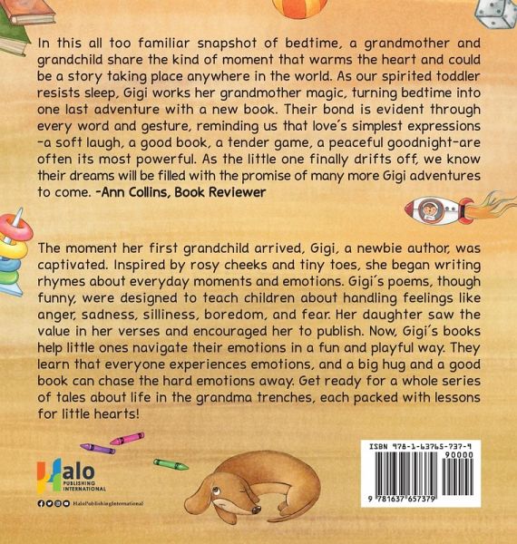 The moment her first grandchild arrived, Gigi, a newbie author, was captivated. Inspired by rosy cheeks and tiny toes, she began writing rhymes about everyday moments and emotions. Gigi's poems, though funny, were designed to teach children about handling feelings like anger, sadness, silliness, boredom, and fear. Her daughter saw the value in her verses and encouraged her to publish.Now, Gigi's books help little ones navigate their emotions in a fun and playful way. They learn that everyone experiences emotions, and a big hug and a good book can chase the hard emotions away. Get ready for a whole series of tales about life in the grandma trenches, each packed with lessons for little hearts!