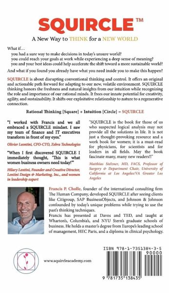 **Wall Street Journal and USA Today Best Seller** Discover SQUIRCLE, the science-based model designed to enhance the way we think. In a world that's growing more complex, we need to rely on new abilities to move through life with confidence. SQUIRCLE enables reason (SQUARE) and intuition (CIRCLE) to work in synergy. It frees us from limiting beliefs that generate stress and burn out as well as a lack of attention and productivity, inspiration, and innovation. It is designed for people who know they need a deeper intelligence but are not sure how to tap or communicate their intuition for better outcomes. With SQUIRCLE, you will:Make sure decisions in today's unsure world Get more done in less time with more focus and ease Listen, be heard and communicate with confidence Always find the courage and resources in your organization and your life to pivot Free the innate potential for creativity, agility, and resilience in you and your team Discover you already have what you need inside you to make this happen and how to unlock this innate potential. SQUIRCLE will help all executives and professionals interested in a sure way to make good decisions, solve complex problems and pivot in an unsure world. Join over 250,000 leaders who have learned this revolutionary way to reset and adapt. Science based. Inspired by nature. Globally proven.