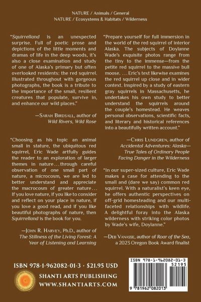 For over thirty years Eric and Doylanne Wade have traveled twice a year to their cabin on a river for an extended stay in the wilds of the Alaska boreal forest. There the adventure-loving couple has built a rewarding life among bear, moose, owls, grouse, and fish. Lately, their interest has been focused on squirrels, specifically the abundant and always amusing Alaska red squirrel. In Squirrelland, Eric writes about his varied experiences with squirrels, both wild and urban, but also layers in the observations of squirrel biologists and researchers as well as the musings of his grand imagination. Doylanne's many photographs make the story engaging and vibrant. Join the Wades on this visit to the Alaska wilderness and learn a few things about the antics of the common squirrel.