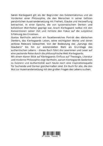Søren Kierkegaard gilt als der Begründer des Existentialismus und als Vordenker einer Philosophie, die den Menschen in seiner tiefsten persönlichen Auseinandersetzung mit Freiheit, Glaube und Verzweiflung betrachtet. In einer Epoche, die von systematischem Denken und kollektiven Wahrheiten geprägt war, brach Kierkegaard radikal mit den Kon-ventionen seiner Zeit und richtete den Fokus auf die subjektive Erfahrung des Einzelnen.Gustav Bartholin zeichnet ein facettenreiches Porträt des dänischen Denkers, das Kier-kegaards Leben, seine wichtigsten Werke und deren zeitlose Relevanz beleuchtet. Von der Bedeutung des "Sprungs des Glaubens" bis hin zur existenziellen Wahl als Grundlage des authentischen Lebens - dieses Buch führt die Leserinnen und Leser auf eine pa-ckende Reise durch die philosophische Welt Kierkegaards.Mit einem klaren Blick auf Kierkegaards Einfluss auf Theologie, Literatur und moderne Philosophie zeigt Bartholin, warum Kierkegaards Gedanken zu Existenz und Authentizität auch heute noch eine Inspirationsquelle für Suchende und Denker gleichermaßen sind. Ein Buch für alle, die den Mut zur Auseinandersetzung mit den großen Fragen des Lebens suchen.