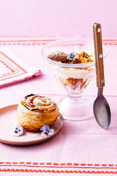 Unter den Gerichten finden sich Köstlichkeiten wie Schlüsselblumensuppe mit Baumnussbrötchen, Kalbsvoressen „Salvia“ mit Safran-Knöpfli, Karotten- und Zucchetti-Piccata, oder süße Verführungen wie Schwarzdorncreme, Schokoladen-Kirsch-Muffins und Löwenzahnhonig-Eis. Jedes Rezept erzählt eine kleine Geschichte – von familiären Traditionen, regionalen Spezialitäten und der Freude am gemeinsamen Genießen.
