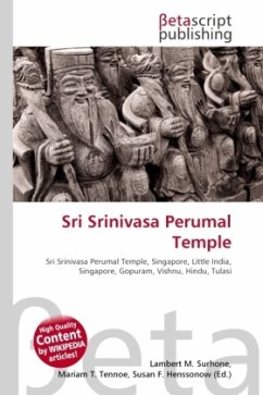 High Quality Content by WIKIPEDIA articles! Sri Srinivasa Perumal Temple or Sri Perumal Temple is one of the oldest temples in Singapore. It is located in Little India on Serangoon Road, where its tall Gopuram (tower) shows the different incarnations of Lord Vishnu. This large complex, dedicated to Vishnu, dates from 1855, but the 20-metres-tall Gopuram is a relatively recent addition, built in 1966 at a cost of S$300,000. The temple's five-tier Gopuram was a donation from P. Govindasamy Pillai, one of the earliest Indian migrants who made good. He ultimately set up a chain of popular general goods stores in Little India and was known for his philanthropic works, a legacy continued by his sons today. The area around the Perumal Temple was once filled with ponds and vegetable gardens. A stream used to lead into the temple and was an important source for devotees to ritually cleanse themselves before beginning worship. Inside the temple's inner courtyard, a well marks the spot where the stream used to flow. There is also a Tulasi(thulassi) (basil plant), the Hindus' symbolic holy bush.
