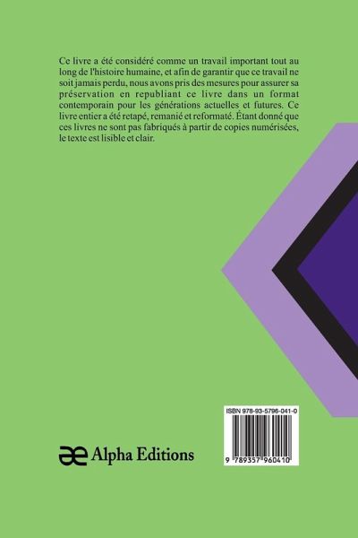 Sérénissime: roman contemporain, un livre classique, a été considéré comme important tout au long de l'histoire de l'humanité, et pour que cet ouvrage ne soit jamais oublié, chez Alpha Editions, nous avons fait des efforts pour sa préservation en rééditant ce livre dans un format moderne pour les générations présentes et futures. Tout ce livre a été reformaté, retapé et conçu. Ces livres ne sont pas constitués de copies numérisées de leur ¿uvre originale et le texte est donc clair et lisible.
