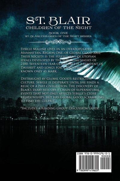 Sybille Malone lives in an overpopulated Manhattan, Region One, of Global Good 2202. Their society is the fulfillment of utopian ideals developed by the surviving masses of 2100. Seventeen-year-old Sybille is a resident of Dayshift and longs for a Nightshift boy known only as Mark. Distraught by Global Good's restrictive culture, Sybille is desperate until she finds a relic of a past civilization. The discovery of Blair's diary sets off a chain of supernatural events that not only affects Sybille's close relationships, but has Global Good scrambling to find the culprit. Note: The first book is written in multi-perspectives as a puzzle that needs piecing together. The story concludes as the characters find their common thread. Book 2 in the series - St. Blair: Sybille's Reign finds Sybille in the eye of a celestial storm.