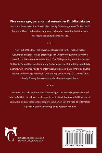 Five years ago, paranormal researcher Dr. Mia Lakatos was the sole survivor of an ill-conceived reality TV investigation of St. Damien's Lutheran Church in Camden, New Jersey, a bloody encounter that destroyed her reputation and poisoned her life. Now, out of the blue, the government has asked for her help. A vicious Columbian drug czar will be attending a key underworld summit across the street from the famous haunted church. The FBI is planning a stakeout inside St. Damien's, and they need Mia along for her expertise. But nothing, absolutely nothing, will convince Mia to re-enter that hellish place, except maybe a cryptic decades-old message that might hold the key to cleansing "St. Damned" and finally freeing the scores of souls who are trapped there. Suddenly, Mia Lakatos finds herself returning to the most dangerous haunted site on Earth to face down the deranged ghost of an infamous serial killer whose iron will rules over those innocent spirits in his sway. But the road to redemption is paved in blood-including, quite possibly, her own.