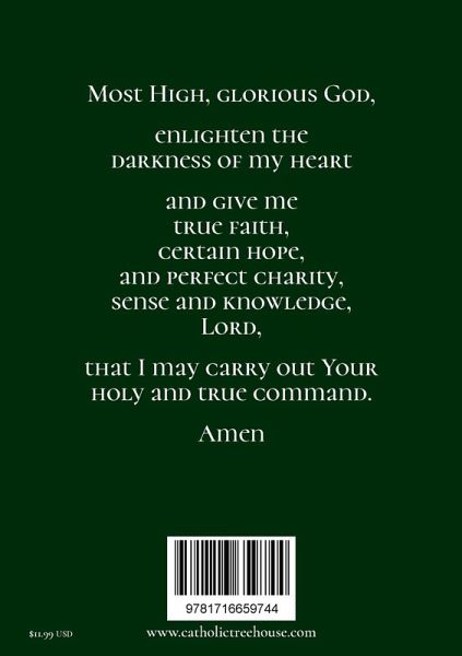 St. Francis of Assisi (1181 - 1226) was a Catholic friar, deacon, stigmatic, confessor of the faith, and the founder of the Franciscan Order (Order of Friars Minor, or OFM). The patron Saint of Italy, animals, merchants & ecologists, he is one of the most venerated Saints in the Catholic Church. This prayer journal contains beautiful illustrations and a treasury of information to help increase your devotion: a thorough biography of St. Francis of Assisi from the Catholic Encyclopedia; a novena; a collection of beautiful prayers written by St. Francis; quotes from the saint; and 75 lined pages for you to record your own notes and prayer intentions.