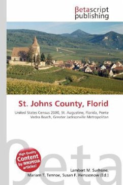 Please note that the content of this book primarily consists of articles available from Wikipedia or other free sources online. St. Johns County is located in northeastern Florida. As of the 2000 census, the population was 123,135. The U.S. Census Bureau estimated the population as of 2008 at 181,540. The county seat is St. Augustine. Due to the inclusion of Ponte Vedra Beach, it is one of the highest-income counties in the United States. St. Johns County is part of the Greater Jacksonville Metropolitan area. It has experienced explosive growth in the last ten years as a flood of people working in Jacksonville built new homes across the county line.