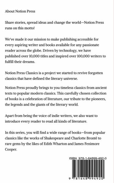 Notion Press proudly brings to you timeless classics from ancient texts to popular modern classics. This carefully chosen collection of books is a celebration of literature, our tribute to the pioneers, the legends and the giants of the literary world. Apart from being the voice of indie writers, we also want to introduce every reader to read all kinds of literature. In this series, you will find a wide range of books—from popular classics like the works of Shakespeare and Charlotte Brontë to rare gems by the likes of Edith Wharton and James Fenimore Cooper.