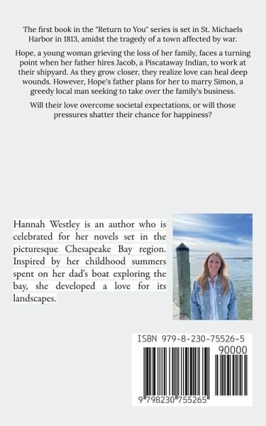 Two souls are connected in a bond unbreakable by distance, death, or time-a theme explored in the three-part series RETURN TO YOU, beginning with the novel ST. MICHAEL'S HARBOR. Set in 1813 St. Michaels, Maryland, Hope is a young woman grieving the loss of her family to typhoid. She encounters Jacob, a Piscataway-English worker her father hires at their shipyard. Their unique bond deepens when Jacob performs an ancient Native American ritual, pledging to always return to her. However, Hope's father intends for her to marry Simon, a greedy local seeking control of the shipyard. When Jacob proposes a plan to protect the town from British attack, Simon becomes jealous and schemes to blackmail Hope's father, putting her future in jeopardy.