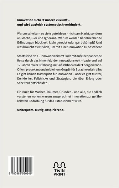 Innovation sichert unsere Zukunft - und wird zugleich systematisch verhindert. Warum scheitern so viele gute Ideen - nicht am Markt, sondern an Macht, Gier und Ignoranz? Warum werden bahnbrechende Erfindungen blockiert, klein geredet oder gar bekämpft? Und was braucht es wirklich, um mit einer Innovation zu bestehen? In >Staatsfeind Nr. 1 - Innovation< nimmt Sebastian Heinz seine Leser mit auf eine spannende Reise durch das Minenfeld der Innovationswelt - basierend auf 12 Jahren realer Erfahrung im Haifischbecken der Energiewende. Offen, provokant und mit feinem Gespür für Sprache zeigt er: Es gibt keinen Masterplan für Innovation - aber es gibt Muster, Denkfehler, Fallstricke und Strategien, die über Erfolg oder Scheitern entscheiden. Ein Buch für Macher, Träumer, Gründer - und alle, die endlich verstehen wollen, warum ausgerechnet Innovation zur gefährlichsten Bedrohung für das Establishment wird. Unbequem. Mutig. Inspirierend.