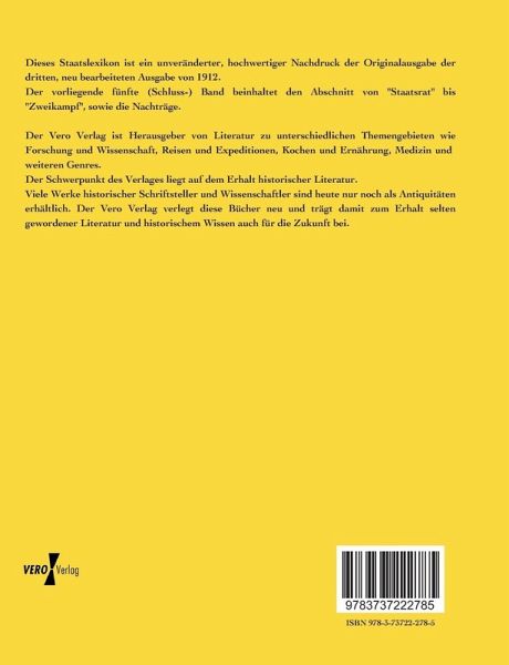 Dieses Staatslexikon ist ein unveränderter, hochwertiger Nachdruck der Originalausgabe der dritten, neu bearbeiteten Ausgabe von 1912.