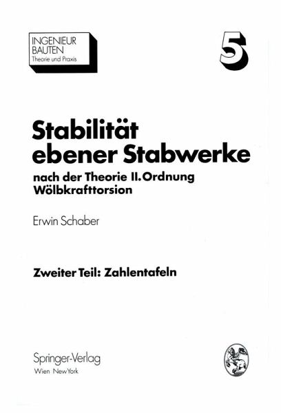 FUr die Berechnung von Schnittlasten, Auflaqerlasten und Verformunqen ~hener Stabwerkc nach der Theoric II.Ordnung unter nerUcksichtiqung von BiegeMoment- und Querkraftver formungen und dcr L5nqselastizit~t der Stabwerksstabc werden in zwei B~nden die theoretischen r,rundlagen cines Berechnungsverfahrens und Zahlenwerte als Rechenhilfen fUr Zahlenrechnungen ver5ffentlicht. 1m Hauptwerk wird das Verfahren dargestellt und dessen Anwendung an einigen Zahlenbeispielen erlautert. 1m vorliegenden Tabellenband werden Zahlemlerte bereitge stellt, die geeignet erscheinen, die oft umfangreichen Zahlenrechnungen zur Bestimmung der Schnittlasten und Verformungen ebener Stabwerke nach der Theorie II.Ordnung merklich zu verringern. Mit diesen Zahlenwerten k5nnen Schnittlasten und Verfor mungen drehbar gelagerter Druck- und Zugstabe a,b infolqe Belastungen M, P, q, q(x), exzentrischen Krafteinleitungen c bezw. c an den Stabenden a bezw. b, parabolischen Vor a b verformunqen vv(x) und linearen Temperaturdifferenzen 6t der Stabe in den Zehntel-Punkten berechnet werden, ferner Stabendmomente und Stabendquerkrafte von Druck- und Zug stMben mit drehstarren und (oder) drehbaren Stabendcn infolge Verformungen der Stabenden und Stabendmomente und Stabendquerkrafte von Druck- und Zuqstaben a,b mit dreh starren und (oder) drehbaren Stabenden infolge Belastungen H, P, q, q(x), exzentrischen Krafteinleitunqen c bezw. c a b an den Stabenden a bezw. b, parabolischen Vorverformungen vv(x) und linearen Temperaturdifferenzen ~t der Sttibe. v Der zur VerfUqung stehende Umfang dieses Bandes zwang den Verfasser zur Beschrankung der Anzahl der Zahlenwerte. Dennoch dUrfte bei der Anwendung der Zahlentafeln ein Interpolieren nicht erforderlich werden. Auf die BerUck sichtigung des Einflusses von Querkraftverformunqen mu6te jedoch verzichtet werden.