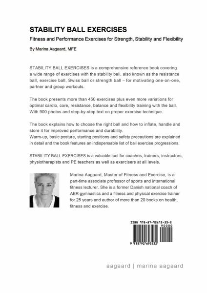 The most comprehensive compilation of stability ball exercises available. Over 450 exercises with the stability ball, also know as the Swiss ball or strength ball. Plus even more variations. Efficient one-on-one, partner and group exercises at all levels, for beginners, intermediate and advanced exercisers, including Olympic Athletes. With more than 900 photos and step-by-step text on proper exercise technique. And a guide to progression of ball exercises. As a unique feature the book includes the most effective and enjoyable warm-up/cardio and stretching exercises with the ball. 'Stability Ball Exercises', a Scandinavian bestseller, is a valuable reference book for any coach, trainer, physical exercise leader, personal trainer, group exercise instructor, physiotherapist and PE teacher as well as exercisers at all levels.