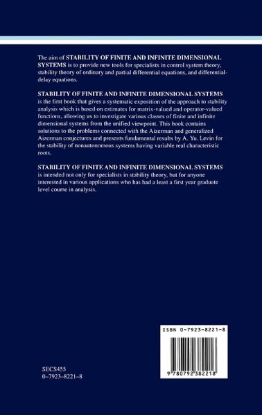 Stability of Finite and Infinite Dimensional Systems is intended not only for specialists in stability theory, but for anyone interested in various applications who has had at least a first-year graduate-level course in analysis.
