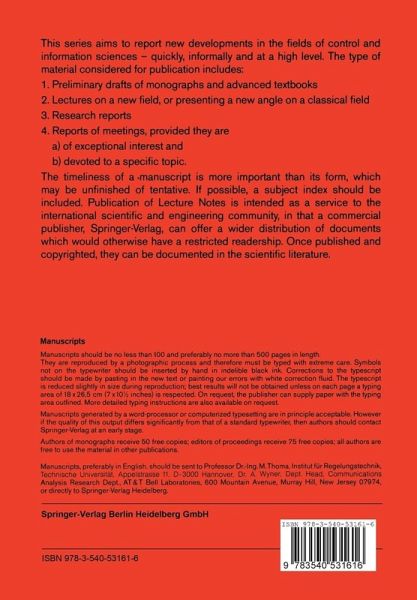 Recent work on the scole model.- Mathematical study of large space structures.- Symbolic formulation of dynamic equations for interconnected flexible bodies: The GEMMES software.- Adaptive optics ¿ Shape control of an adaptive mirror.- Energy decay estimates for a beam with nonlinear boundary feedback.- Uniform stabilization of the wave equation with dirichlet-feedback control without geometrical conditions.- Actuators and controllability of distributed systems.- Linear quadratic control problem without stabilizability.- Riccati equations in noncylindrical domains.- Boundary control problems for non-autonomous parabolic systems.- Existence and optimal control for wave equation in moving domain.- Galerkine approximation for wave equation in moving domain.- Further results on exact controllability of the Euler-Bernoulli equation with controls on the dirichlet and neumann boundary conditions.- Some properties of the value function of a nonlinear control problem in infinite dimensions.- Identification of coefficients with bounded variation in the wave equation.- Shape hessian by the velocity method: A Lagrangian approach.- Shape sensitivity analysis of hyperbolic problems.- Differential stability of perturbed optimization with applications to parameter estimation.- A numerical method for drag minimization via the suction and injection of mass through the boundary.- Using the physical properties of systems for control: An illustration.