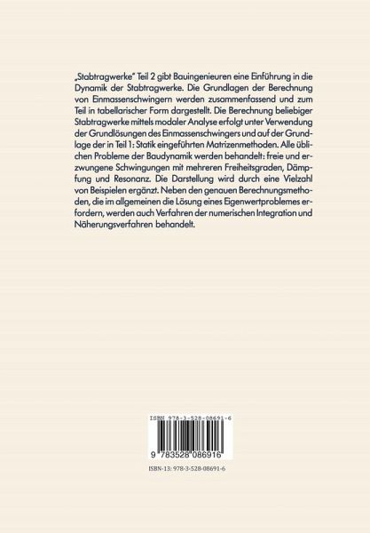 6 stehen. Soweit mtfglich, wurden far alle hehandelten Rerechnungs methoden ei nfache Rei spi el e aufgenommen: di ese Rei spi el e werden, wie in Teil 1, Mit dem Programmsystem SMIS geltfst. nie Verfasser mtfchten sich hei Frau II. Lechtenhtfhmer fUr die sorgf~ltige Erledigung der umfangreichen Schreibarhei ten auf einer Textverarbeitungsanl age und hei Frau II. Hein ze fUr die Anfertigung der Zeichnungen hedanken. nie Rerechnung der meisten Reispiele erfolgte auf den Rechenanlagen der lIniversit~t r. esamthochschule Essen, die Reispiele 6. 3,8. 2 und 8. 4 wurden auf der Rechenanlage der Firma Rilfinger ft Rerger in Mannheim herechnet. 7 Inhaltsverzeichnis Vorwort 5 Inhalt 7 Rezeichnungen 10 1 EinfUhrung 12 1. 1 Statische, quasistatische und dynamische Relastung 12 1. 2 Zur Entwicklung der Raudynamik 13 1. 3 Erfahrungswerte und Abschatzungen 20 1. 4 Rerechnungsvorschriften 22 2 Schwingungen mit einem Freiheitsgrad 24 2. 1 Grundbegriffe 24 2. 2 Die nifferentialgleichung der Rewegung 28 2. 3 Freie Schwingungen 34 2. 4 Harmonische Relastung 40 2. 5 Periodische Relastung - Fourierreihe 45 2. 6 Nichtperiodische Relastung - Fourierintegral 48 2. 7 Das Duhamel - Integral 52 2. 8 NumerisC:'he Integration der Rewegungsgleichung 56 2. 9 Antwortspektfen 60 ('7 3 ElementMatrizen 3. 1 Dynamische Elementsteifigkeitsmatrix 67 3. 2 Die konsistente Elementmassenmatrix 78 3. 3 Die konzentrierte Elementmassenmatrix 84 4 Freie ungedampfte Schwingungen von Stabwerken R5 4. 1 Aufstellung der Rewegungsgleichungen 85 4. 2 Freie Schwingungen 88 8 Inhaltsverzeichnis 5 Erzwungene ungedSmpfte Schwingungen von Stabwerken 112 5.