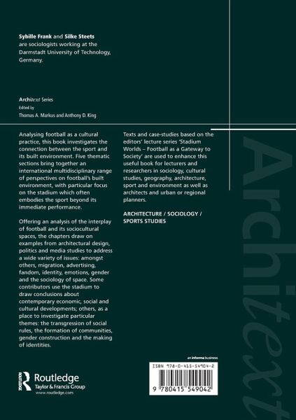 Introduction: Football, Space and the Built Environment Part 1: The Politics of Representation and Design 1. The New European Stadium 2. "Show Yourself to the People!": Ancient Stadia, Politics and Society 3. Challenging the Stadium: Watching Sport Events in Public Part 2: Architecture and Media 4. The Stadium as a Cash Machine 5. The Mirror Stage in the Stadium: Media Spaces of Television and Architecture 6. Killing Sports Fields: The Amahora Stadium Complex in Kigali, Rwanda Part 3: When Global Flows Meet Local Cultures 7. Global Players and the Stadium: Migration and Borders in Professional Football 8. Going to the Match: The Transformation of the Match-Day Routine at Manchester City FC 9. "Come Home": The Stadium, Locality and the Community at FC United of Manchester Part 4: Gender and Space 10. Sport, Football and Masculine Identity: The Stadium as a Window onto Gender Construction 11. Producting Gender-Normative Spaces in U.S. Women's Professional Soccer 12. Football Under Cover in Tehran's Ararat Stadium Part 5: Emotions and the Body 13. Emotions in Sports Stadia 14. Heroes, Myths and Magic Moments: Religious Elements on the Sacred Ground 15. 'Beckhamania': Promoting Post-modern Celebrities Beyond the Stadium 16. Conclusion: The Stadium - Lense and Refuge