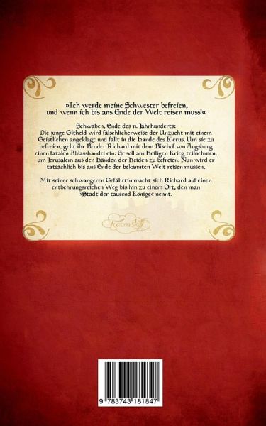 »Ich werde meine Schwester befreien, und wenn ich bis ans Ende der Welt reisen muss!«Schwaben, Ende des 11. Jahrhunderts: Die junge Githeld wird fälschlicherweise der Unzucht mit einem Geistlichen angeklagt und fällt in die Hände des Klerus. Um sie zu befreien, geht ihr Bruder Richard mit dem Bischof von Augsburg einen fatalen Ablasshandel ein: Er soll am Heiligen Krieg teilnehmen, um Jerusalem aus den Händen der Heiden zu befreien. Nun wird er tatsächlich bis ans Ende der bekannten Welt reisen müssen.Mit seiner schwangeren Gefährtin macht sich Richard auf einen entbehrungsreichen Weg bis hin zu einem Ort, den man Stadt der tausend Könige nennt.