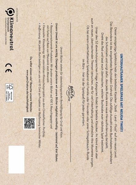 Alle Bücher und Blöcke wurden mit Farben auf Pflanzenöl-Basis und auf 100 % Recyclingpapier gedruckt. Der Verlag pen2nature unterstützt Klimaschutzprojekte und spendet 10 Cent pro Produkt für die Pflanzung neuer Bäume in heimischen Wäldern.
